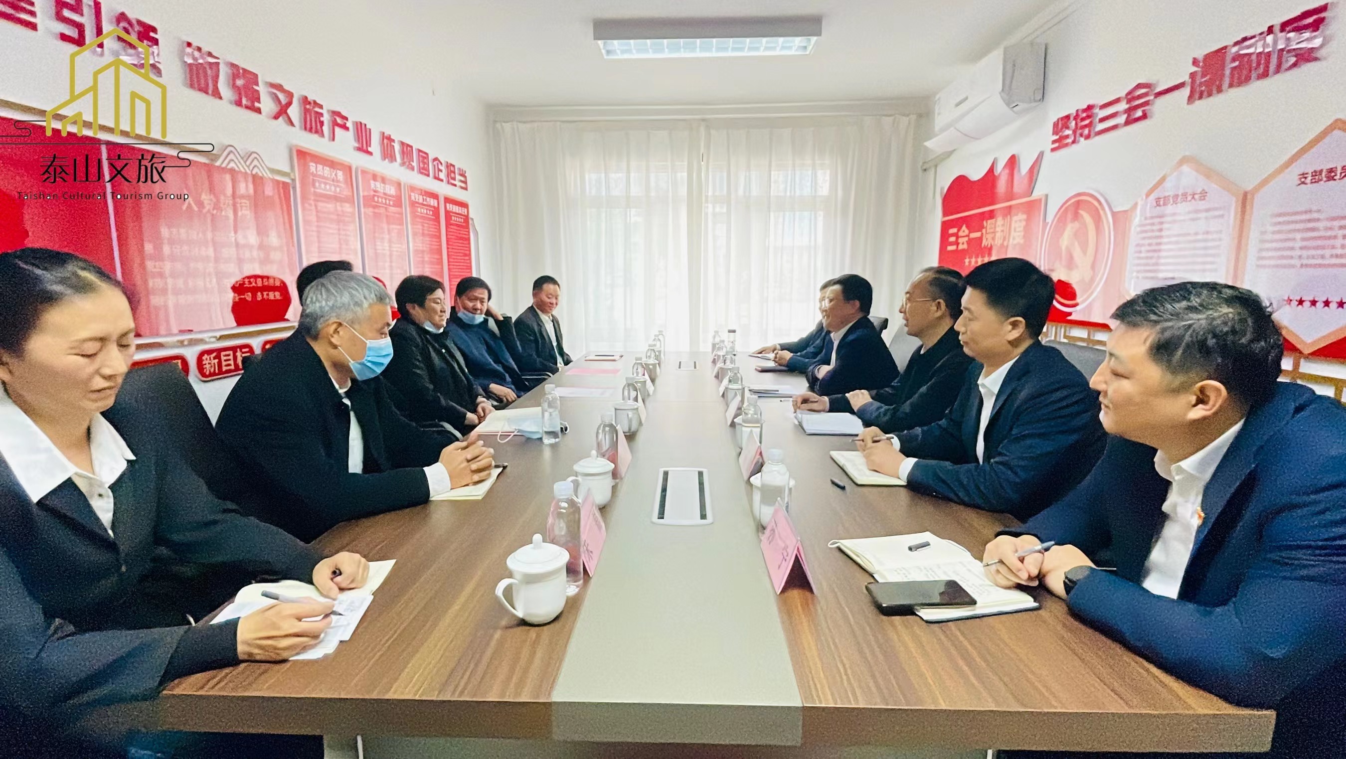 起航新征程,奮楫正當(dāng)時(shí)。10月14日,普照賓館劃轉(zhuǎn)移交座談會(huì)在泰安市泰山文化旅游集團(tuán)有限公司(文中簡(jiǎn)稱:泰山文旅集團(tuán))召開。集團(tuán)黨委書記、董事長(zhǎng)時(shí)貞強(qiáng),黨委副書記劉傳紅,黨委委員、紀(jì)委書記、監(jiān)察專員李國(guó)華,黨委委員、副總經(jīng)理王厚哲,黨委委員、會(huì)展集團(tuán)負(fù)責(zé)人井立偉,黨委委員、酒店集團(tuán)負(fù)責(zé)人孫寧,及普照賓館職工代表參與座談會(huì)。