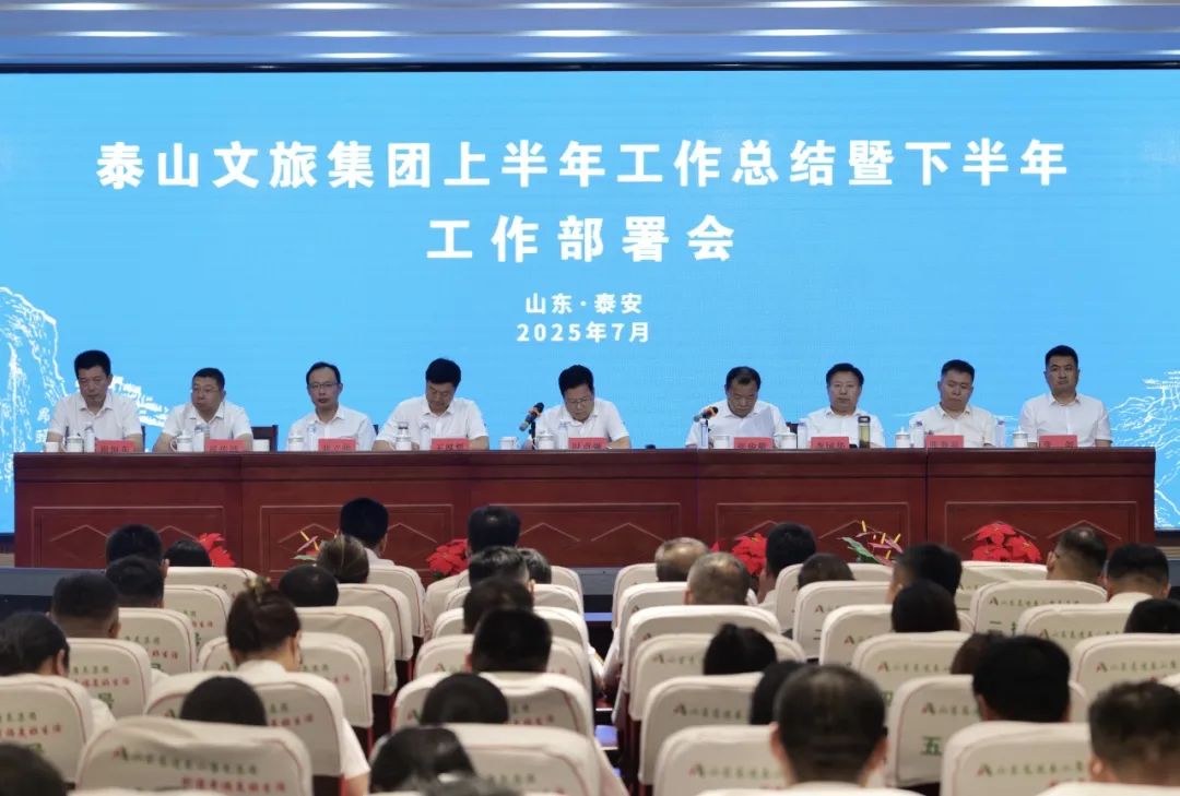 7 月 12 日,泰山文旅集團召開上半年工作總結(jié)暨下半年工作部署會。會議全面總結(jié)集團 2025 年上半年各項工作,深入分析當(dāng)前面臨的形勢和存在的問題,安排部署下半年重點任務(wù),動員集團上下進一步統(tǒng)一思想、堅定信心、攻堅克難,確保圓滿完成全年各項目標(biāo)任務(wù)。泰山景區(qū)黨工委委員,集團黨委書記、董事長時貞強出席會議并講話,集團黨委副書記、總經(jīng)理張俊敏主持會議。